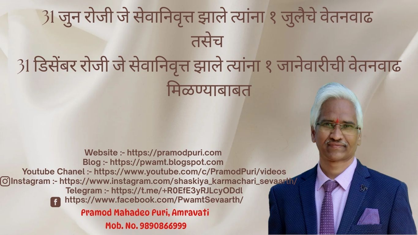 31 जुन रोजी जे सेवानिवृत्त झाले त्यांना १ जुलैचे वेतनवाढ तसेच 31 डिसेंबर रोजी जे सेवानिवृत्त झाले त्यांना १ जानेवारीची वेतनवाढ मिळण्याबाबत